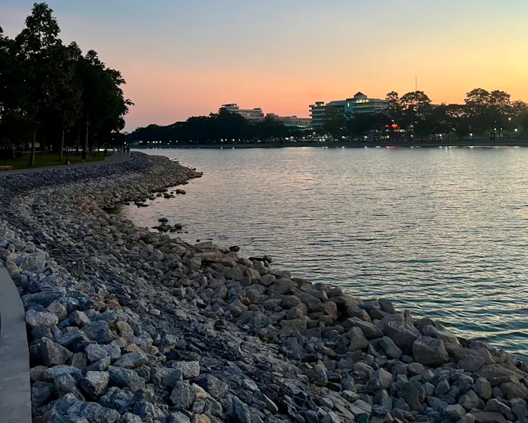 A city park perfect for morning jogs or relaxing and enjoying the cool breeze.