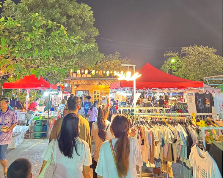 This trendy evening market is a meeting point for young people, featuring diverse and unique street food stalls, along with affordable fashion items in an open-air atmosphere. It's easily accessible and one of the most vibrant night markets in the city, offering a wide variety of delicious food for foodies, from local Chanthaburi dishes to popular snacks. The friendly atmosphere makes it perfect for a leisurely stroll and enjoying tasty treats at budget-friendly prices.