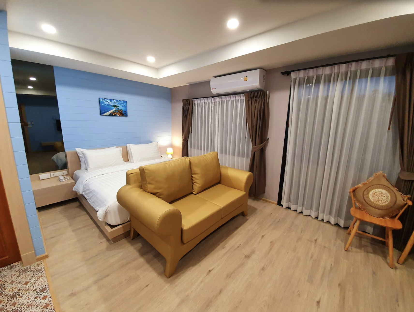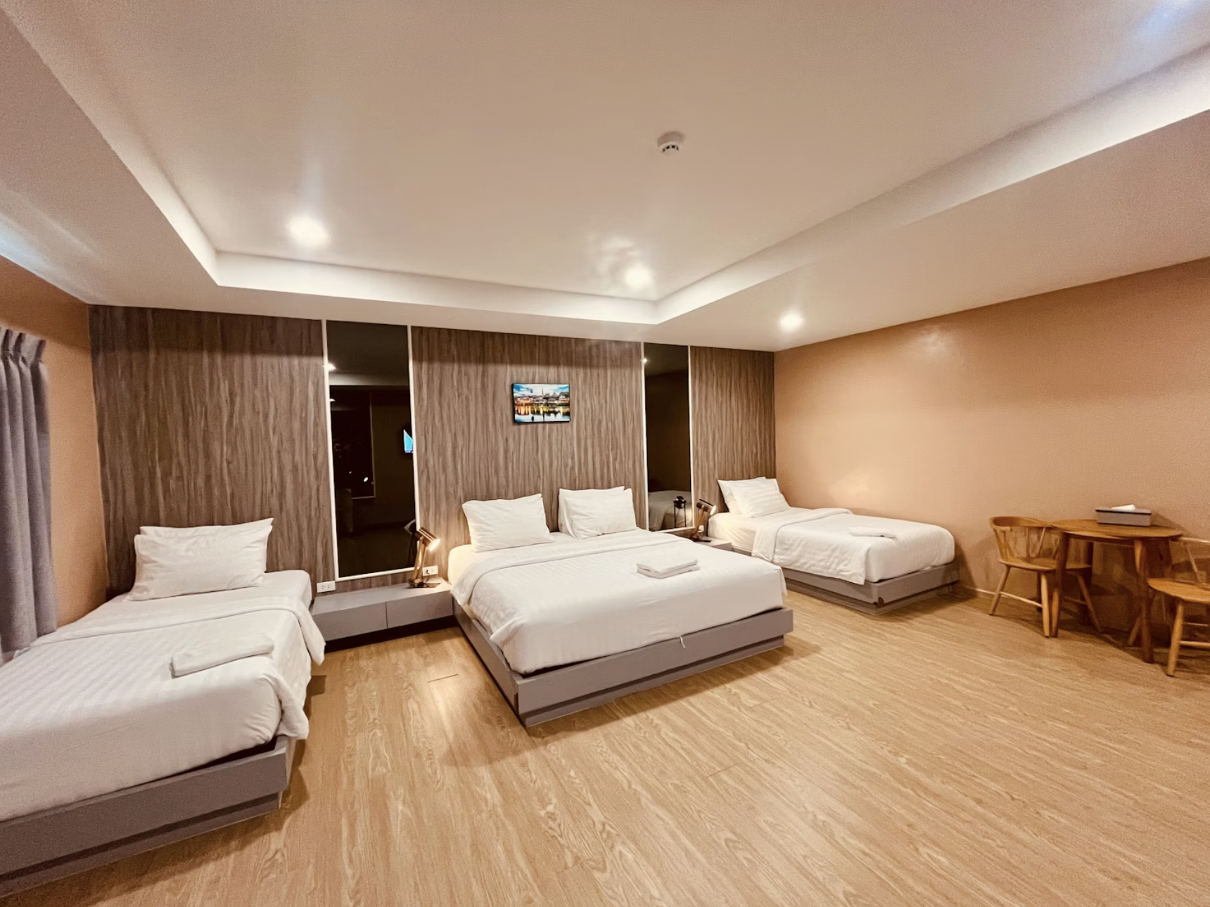 "Leisure rooms" are suitable for customers traveling as a group of friends or family. Leisure rooms can accommodate up to 4 guests and spacious rooms suitable for group activities such as Play board games, play cards and party, etc. The Leisure rooms are designed from the concept of "Old Riverside Market" inspired by Chantaboon Waterfront Market. By combining the characteristics of the old wooden cover with modern materials. That allows customers to absorb the atmosphere as if they are actually staying in the area to create a different experience.