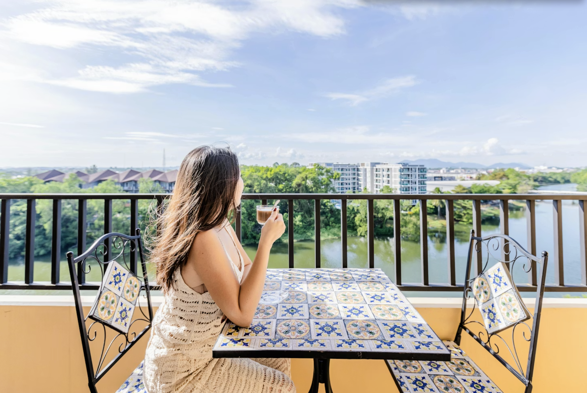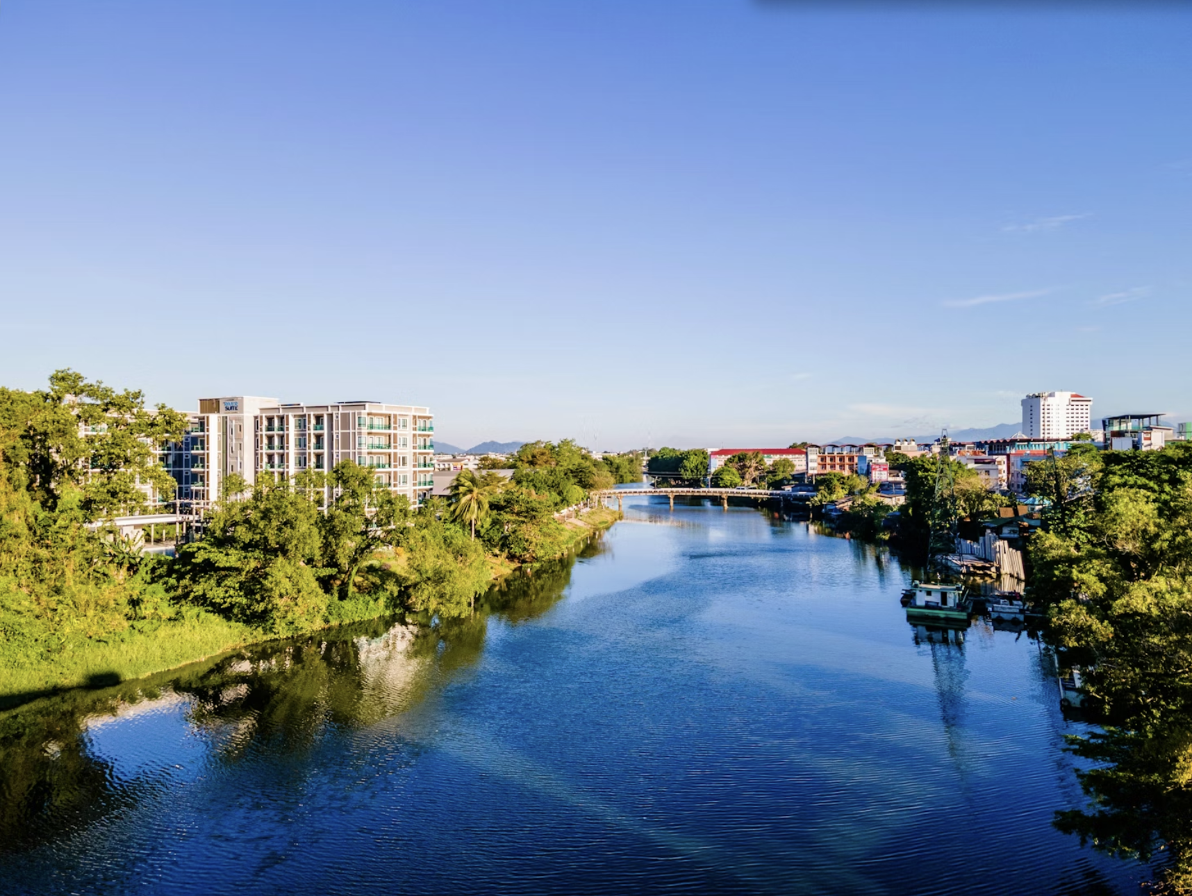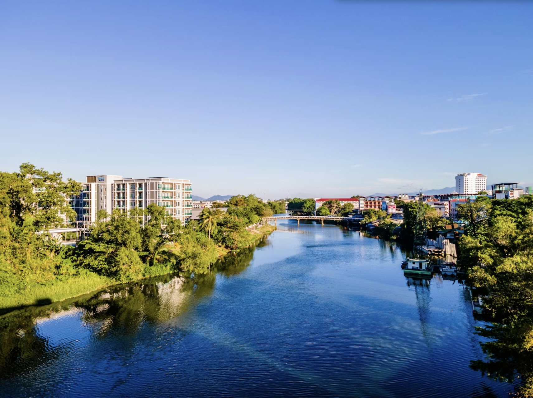 "Heaven Sweet Riverfront Rooms", designed with inspiration from the natural atmosphere along both banks of the Chanthaboon River, together with our "contemporary Chanthaburi" concept. And another important highlight of us, during 17.00 - 18.00 PM of every day during the rainy season, there will be a red hawk swooping in for food in the river area, which can be seen from the balcony of the Heaven Sweet Riverfront Room.