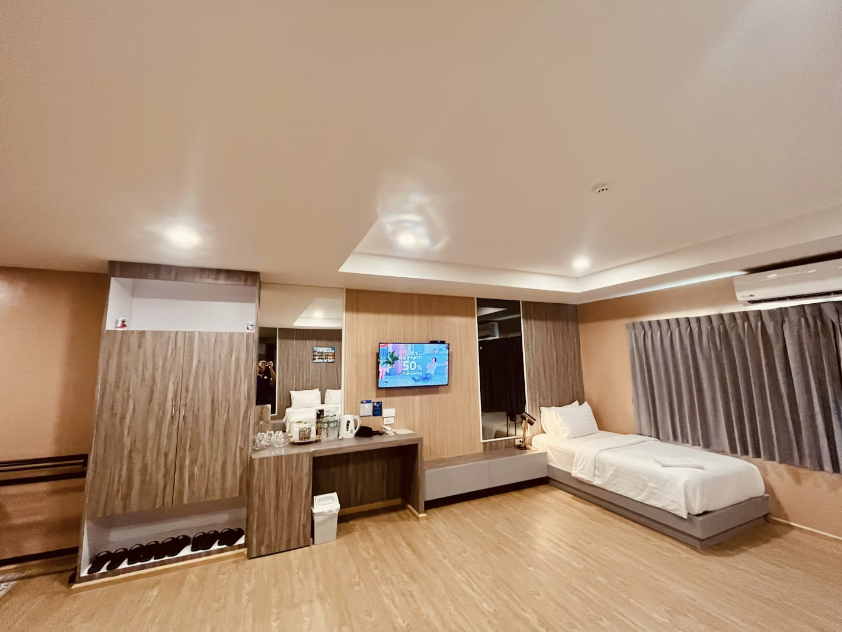 "Leisure rooms" are suitable for customers traveling as a group of friends or family. Leisure rooms can accommodate up to 4 guests and spacious rooms suitable for group activities such as Play board games, play cards and party, etc. The Leisure rooms are designed from the concept of "Old Riverside Market" inspired by Chantaboon Waterfront Market. By combining the characteristics of the old wooden cover with modern materials. That allows customers to absorb the atmosphere as if they are actually staying in the area to create a different experience.