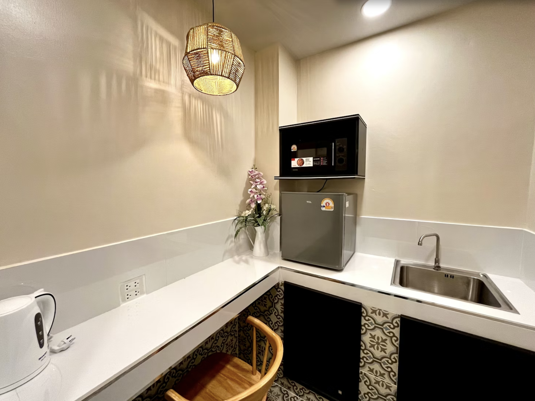 "Cozy Sweet With Riverfront" designed in the warmly theme inspired by the forest atmosphere together with the river of Chanthaburi, together with the concept of "USABAI Riverside" that "The Chanthaburi contemporary" that will allow customers to absorb the atmosphere of Chanthaburi Rivershore more deeply. Cozy Sweet With Riverfront is a room next to the Chanthaburi River. This room have the most facilities of the hotel which have in-room kitchen and dinning area together with riverfront private relaxing area , Which is suitable for relaxing from working hard