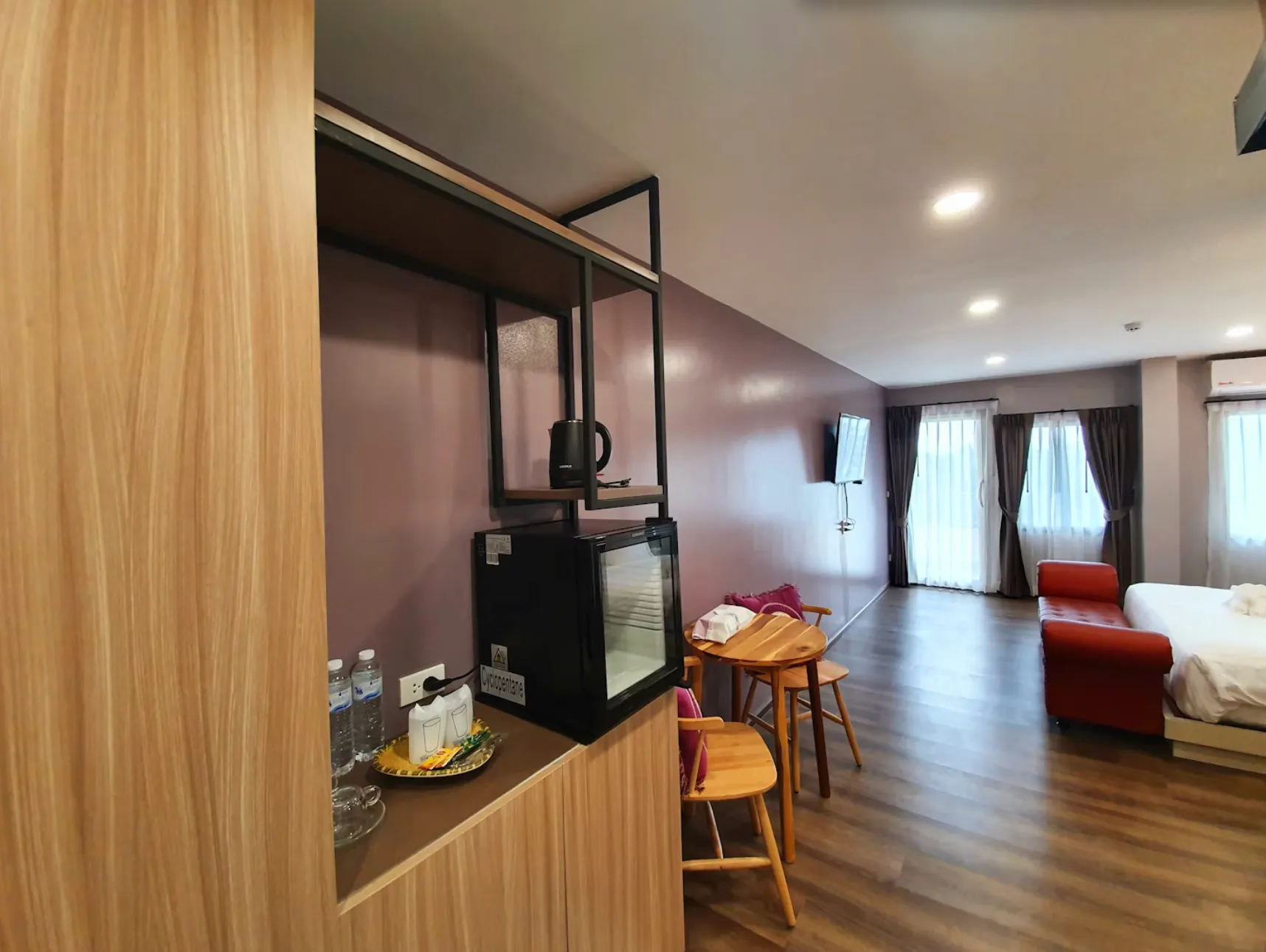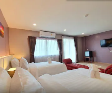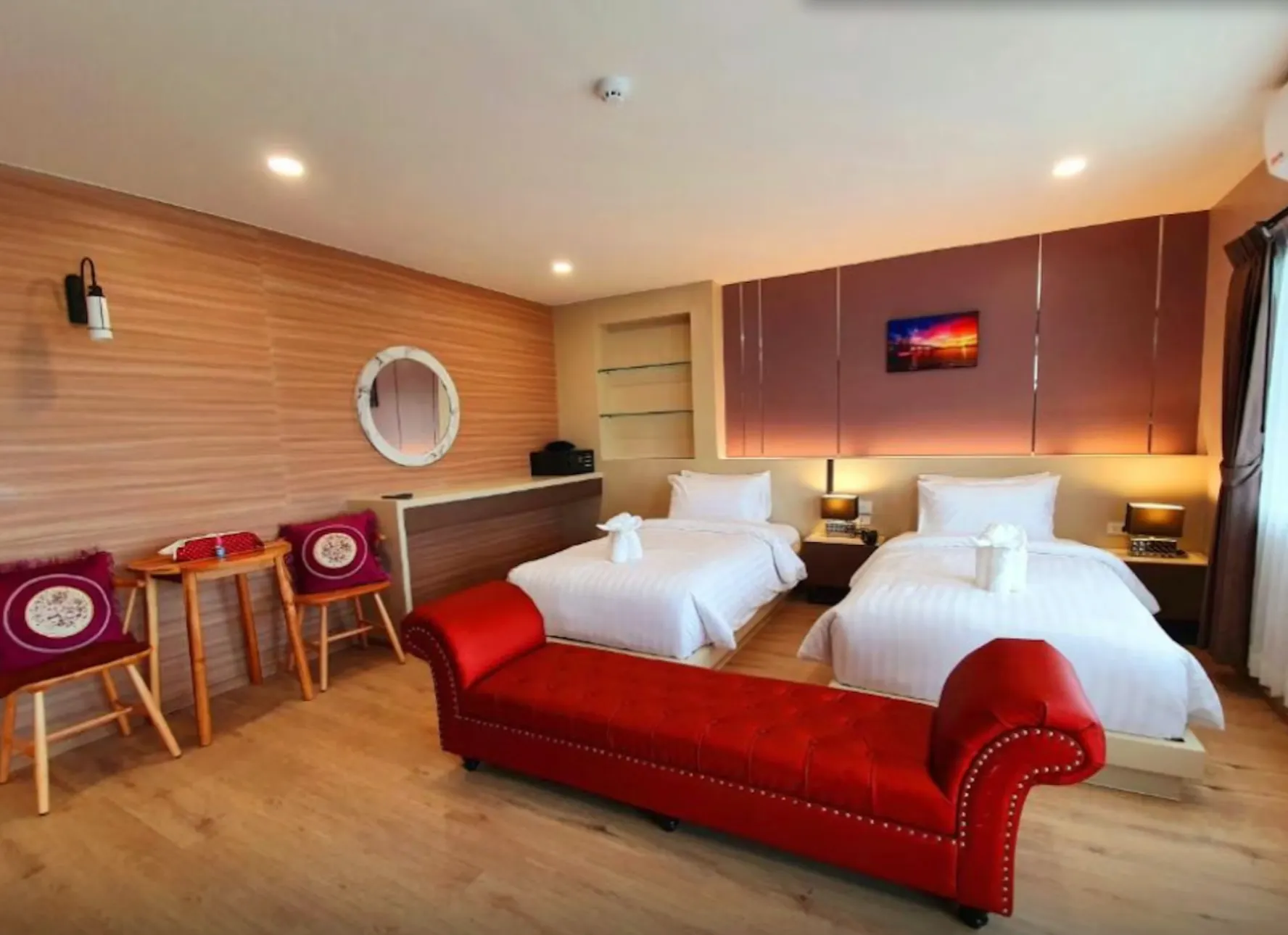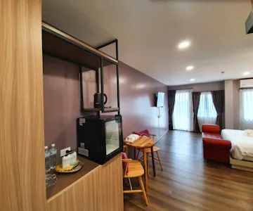 "Heaven Sweet Riverfront Rooms", designed with inspiration from the natural atmosphere along both banks of the Chanthaboon River, together with our "contemporary Chanthaburi" concept. And another important highlight of us, during 17.00 - 18.00 PM of every day during the rainy season, there will be a red hawk swooping in for food in the river area, which can be seen from the balcony of the Heaven Sweet Riverfront Room.