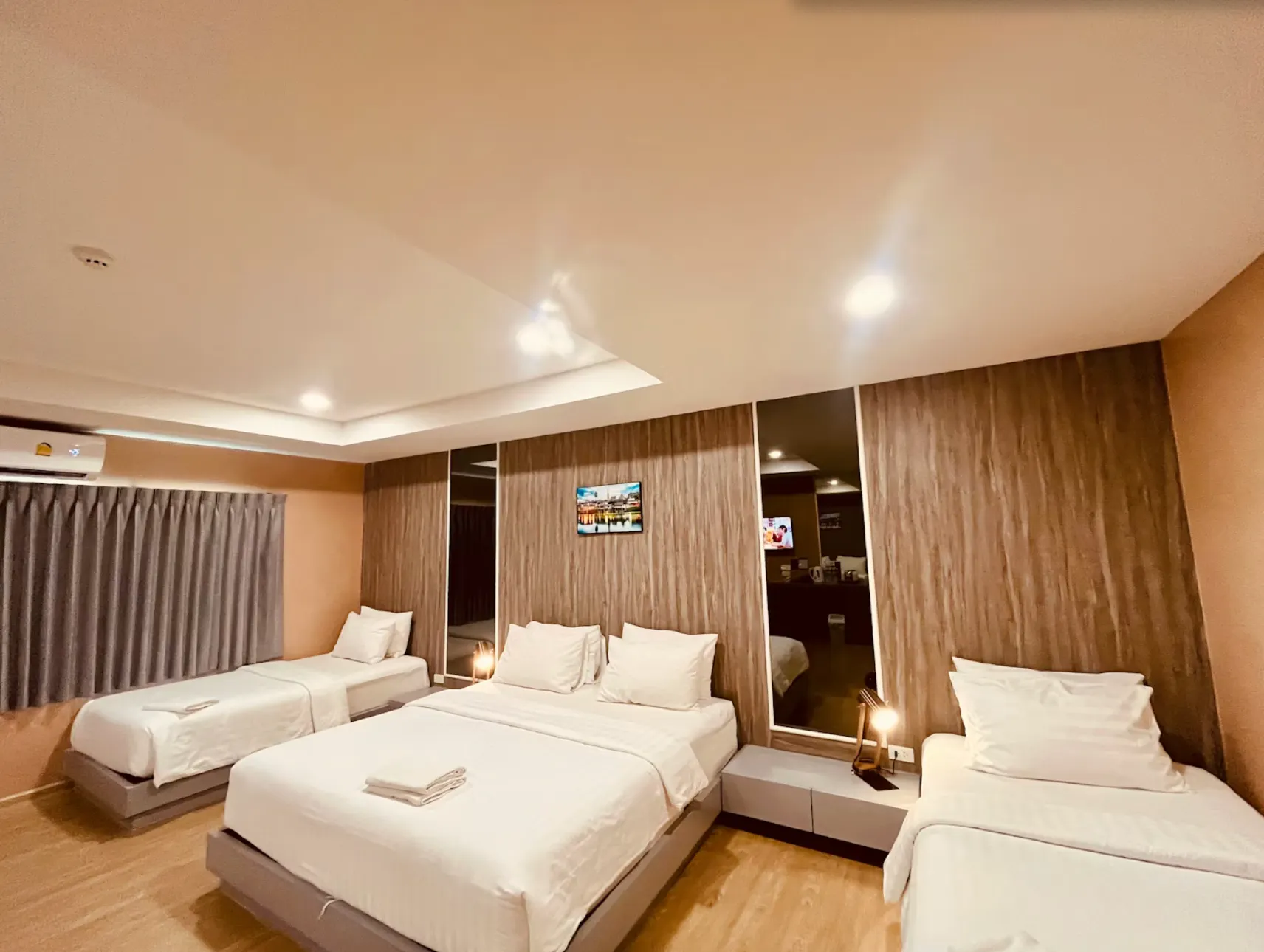 "Leisure rooms" are suitable for customers traveling as a group of friends or family. Leisure rooms can accommodate up to 4 guests and spacious rooms suitable for group activities such as Play board games, play cards and party, etc. The Leisure rooms are designed from the concept of "Old Riverside Market" inspired by Chantaboon Waterfront Market. By combining the characteristics of the old wooden cover with modern materials. That allows customers to absorb the atmosphere as if they are actually staying in the area to create a different experience.