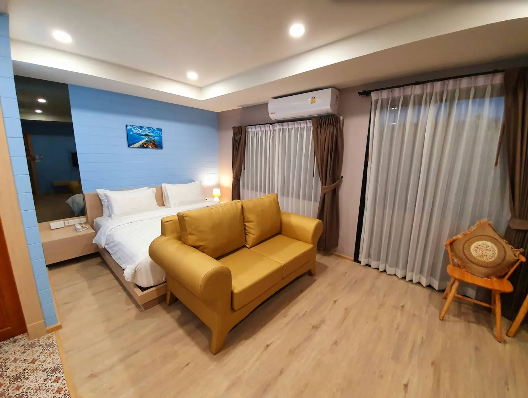 "Paradise room" designed in the sea theme inspired by the seaside atmosphere of Chanthaburi, together with the concept of "USABAI Riverside" that "The Chanthaburi contemporary" that will allow customers to absorb the atmosphere of Chanthaburi seashore more deeply. Paradise room is a room next to the Chanthaburi River. which is suitable for relaxing from working hard