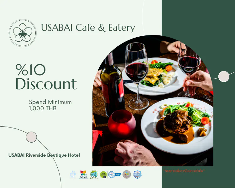 在 USABAI Café & Eatery 享用融合独特风味与尖竹汶河景的精致餐饮体验,由专业主厨与经验丰富的厨房团队为您呈现泰式与西式美食。