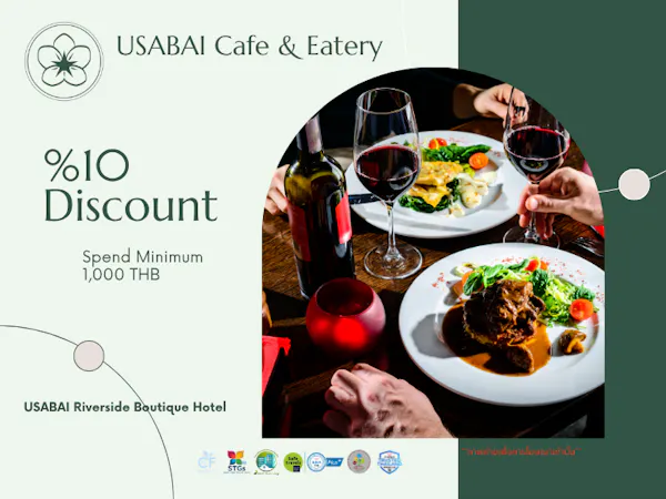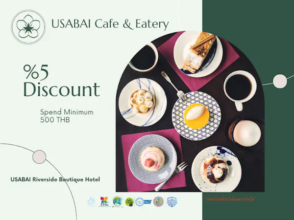 在 USABAI Café & Eatery 享用融合独特风味与尖竹汶河景的精致餐饮体验,由专业主厨与经验丰富的厨房团队为您呈现泰式与西式美食。